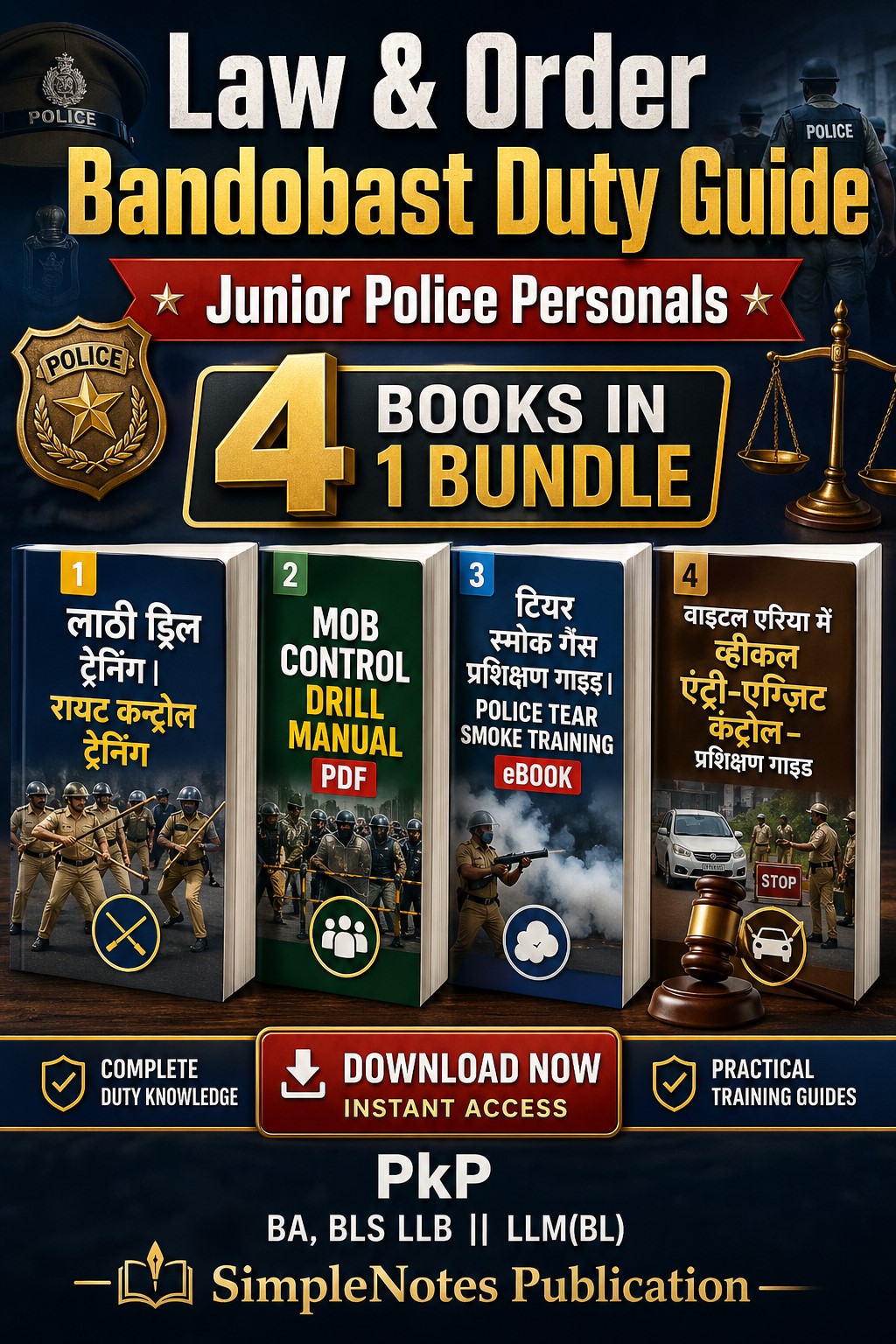 यह विशेष ईबुक बंडल जूनियर पुलिस कर्मियों, ट्रेनिंग में लगे स्टाफ, और फील्ड ड्यूटी करने वाले अधिकारियों के लिए तैयार किया गया है। इसमें Bandobast Duty, Riot Control, Mob Handling और Vehicle Control से संबंधित प्रैक्टिकल ट्रेनिंग गाइड्स शामिल हैं।